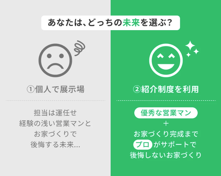 ご希望に合わない場合は、弊社が代行して丁寧にお断りし、別の住宅メーカーをご紹介いたしますのでご安心ください。